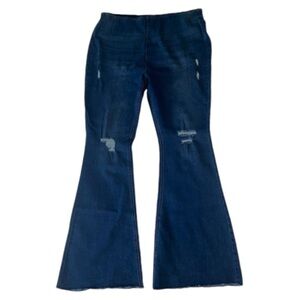 NOBO Juniors 15-17 Blue Flare Distressed Frayed Hem Elastic Waist Denim EUC