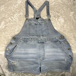 NOBO Junior's Blue Rolled Cuff Stretch Cotton Denim Jean Short Overalls XXL