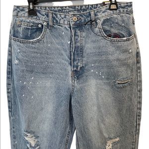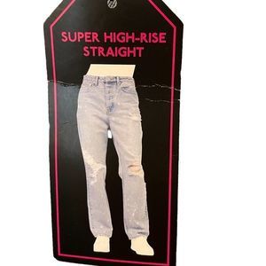 NOBO New Light Wash Super Hi Rise Relaxed Fit 90s Distressed Denim Blue Jeans