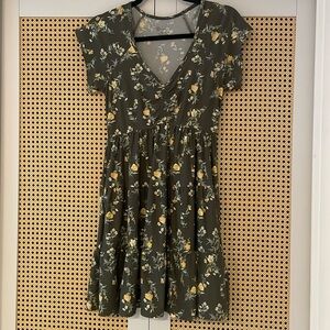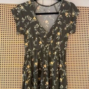 NOBO No Boundaries Junior Women Olive Green Yellow Floral Soft Knit Dress M 7 9