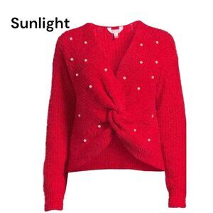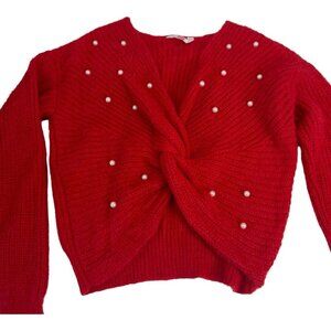 NOBO No Boundaries Women SZ M (7-9) Red Twisted Pearl Ribbed Crop Sweaters