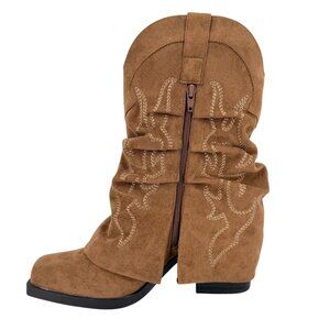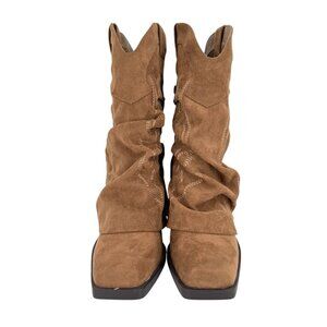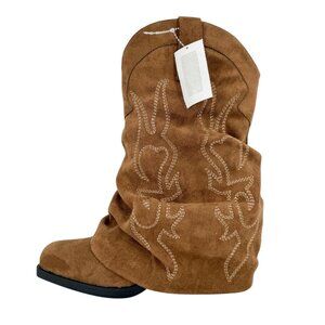 NOBO Women's Square Toe Zip Side Slouchy Foldover Brown Western Boots Size 11 NWOB