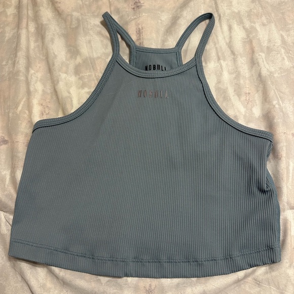 Chic slate ribbed crop top by NOBULL. Offers a modern and comfortable fit.