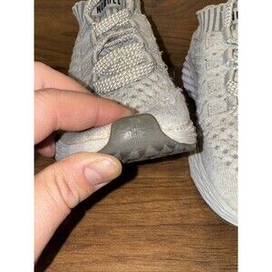 The NOBULL Women's gray All day Knit Running Sneaker Training Shoes in size 8.5 feature a solid gray color with a lace-up closure and knitted fabric upper material. Designed for athletic performance, these sneakers are suitable for gym & training, walking, cross training, and CrossFit activities. The rubber outsole provides durability and support, making them ideal for both activewear and casual occasions. The unique NOBULL branding and bull theme add a stylish touch to these comfortable and versatile sneakers.