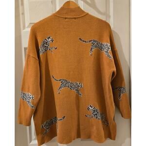 NOC Cheetah Brown Mock Neck Long Sleeve Pullover Sweater Medium 3/4 Sleeve