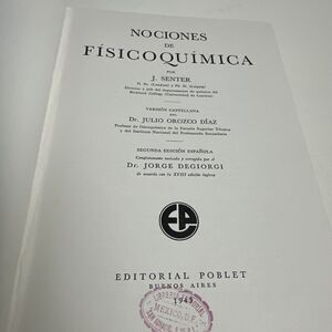 This vintage hardcover book, titled "Nociones de Fisicoquimica Por J. Senter Editorial Poblet 1943," is a must-have for any science enthusiast. Written by J. Senter, this book covers various topics in science, making it a valuable addition to any collection. The book is in Spanish language and was published in 1943, adding to its rarity and historical significance. It is a great find for collectors and researchers alike.