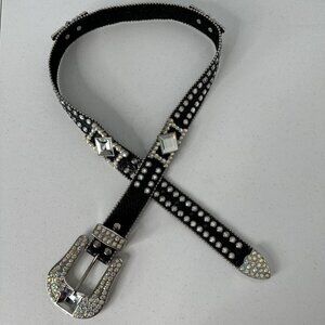 NOCONA Black Leather Belt Western COWGIRL Crystal Rhinestone Aurora Borealis M/L