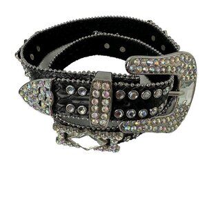 NOCONA Black Leather Western COWGIRL Crystal Rhinestone Aurora Borealis Belt M/L