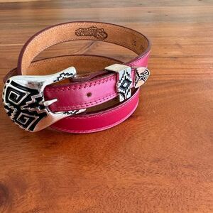 NOCONA Red Leather Tribal/Aztec style belt sz 32 EUC VINTAGE