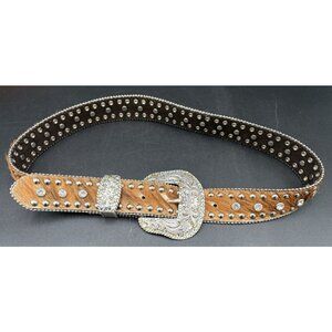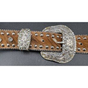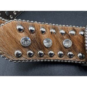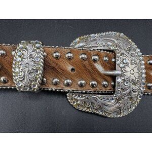 NOCONA Western Rhinestone Studded Cowgirl Hair on Hide Leather Belt N3442002 GUC