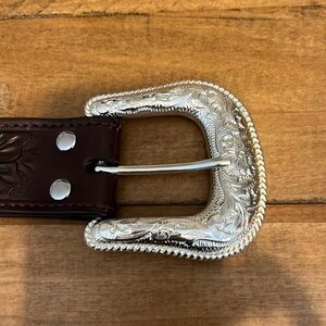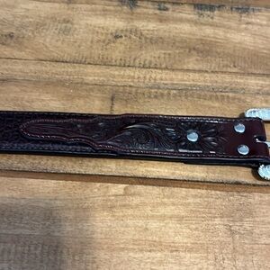 Nocona western belt, brown tooled flowers, size 38 in very good condition #HJJ