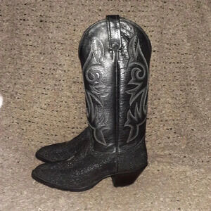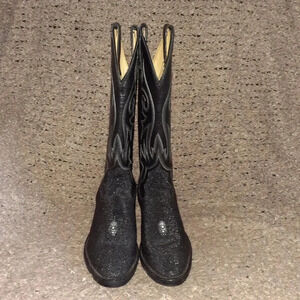 NOCONA-Classic Black Leather & Exotic Sting Ray Cowboy Boots-Sz 5C Nocona=6 Women