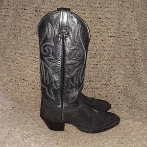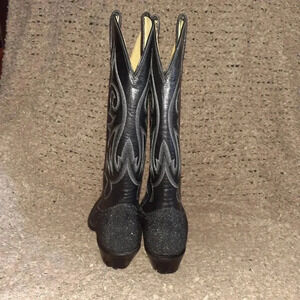 NOCONA-Classic Black Leather & Exotic Sting Ray Cowboy Boots-Sz 5C Nocona=6 Wome