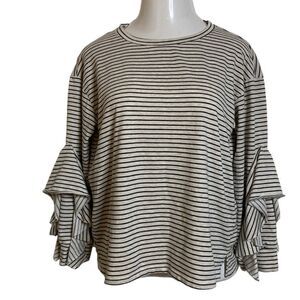 NOE HEIGHTS Ruffle Sleeve Striped Long Sleeve Shirt Top