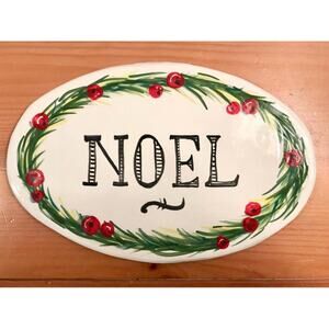 NOEL hand painted/glazed Surrounded by Evergreen & Red Berries Oval Plaque/Wall Art Ceramic Sign