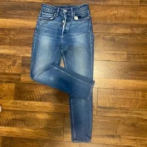 NOEND High Rise Button fly Jeans. Slim straight leg. 28 1/2” Inseam. 96% cotton 3% Pikyester 1% Spandex