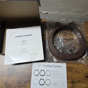 NO-FLAP Large CAT DOOR Brown Plastic NIB Cat Ears Design New