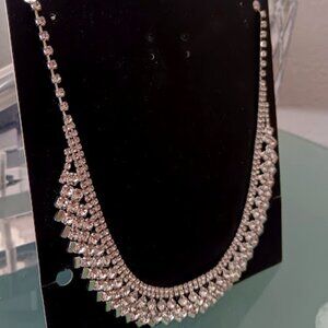 ONLY **1** LEFT!!! NEW!!! NOIR JEWELRY Glamorous Silver Round & Square Clear Crystal Statement Necklace**Silver Necklace has a Single Tennis Link with Clear Crystals that extends into 2 Rows of Tennis Links with Clear Crystals! Below that there are 3 Rows of Square Shaped Clear Crystals with Silver Rectangle Shaped Bars attached! Necklace has a bit of a Modern Feel to it! Gorgeous Necklace to wear on a Special Occasion (FORMAL, PROM, WEDDING, Etc.)! Please Note: The Jewelry Set is missing the Earrings**Necklace is 16" Long + 3" Extender/Lobster Clasp**NEW ON HANG TAG!