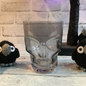 NIB, set of 2, glass, gray, skull detail, Halloween drinking glasses.