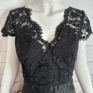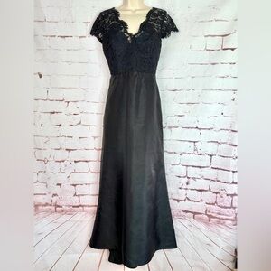 NOIR by Lazaro Black Chantilly Lace Silk Organza Formal Evening Gown Size 12