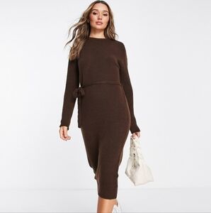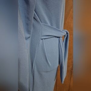 NOISY MAY Ribbed Longsleeve Mock Neck Stretch Midi Dress Tie Front.Blue. S NWT