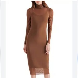 Featuring a sophisticated mock neck and long sleeves, this dress offers a sleek and minimalist design.