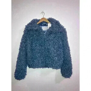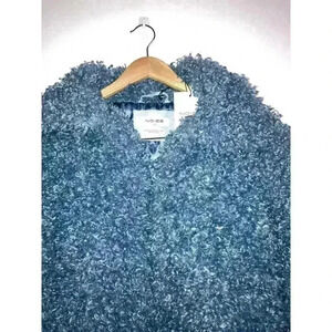 NOIZE Kelly Faux Fur Jacket Blue Cozy Collared Teddy Jacket Size S