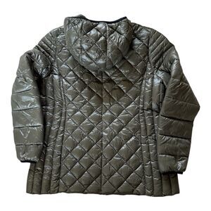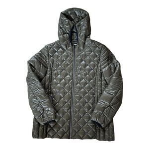 NOIZE Stella Vegan Hooded Quilted Lightweight Puffer Jacket in Olive Green Size XL in excellent pre-owned condition.