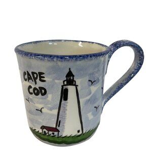 NOLA WATKINS Cape Cod Lighthouse Ceramic Mug 12oz Nautical Sea Gulls Beach