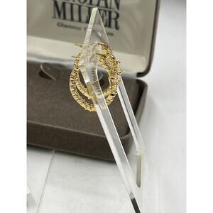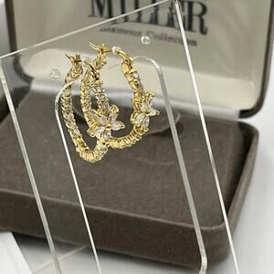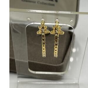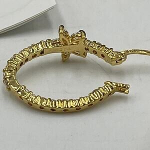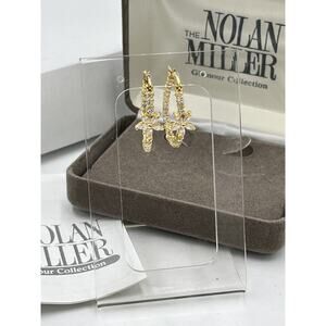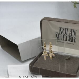 NOLAN MILLER Signed Flower Crystal Clear Bling CZ Gold tone Hoop Earrings New