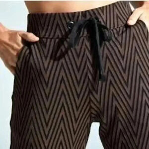 NOLI Vienna Jacquard Jogger Pants Drawstring Pockets Women Small Brown Black