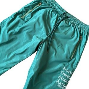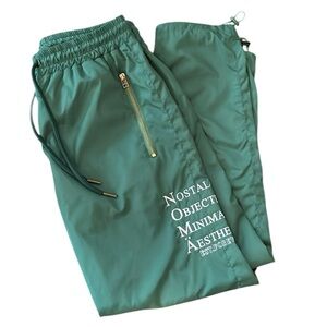 NOMA T.d. Green Pants Size Medium “Nostalgic Objective Minimal Aesthetic”Relaxed Fit, Lightweight and Sporty. Featuring Gold Two Side Pockets w/ Gold Zipper, Thick Elastic Waist Band w/ Drawstring & Cinched Ankle Drawstrings.