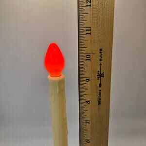Classic vintage NOMA electric Christmas candles with original orange flame bulbs. These are the same model as the sealed examples but offered here as a loose set. All three have been tested and are fully functional, producing a warm traditional holiday glow.