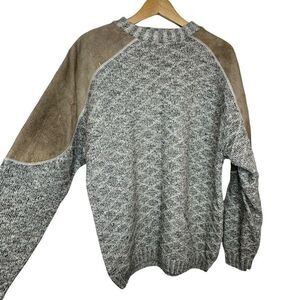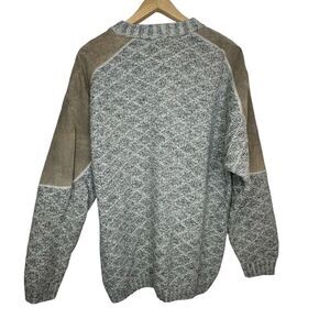 NOMAD Tan Knit Wool Blend & Suede Cardigan Sweater Large