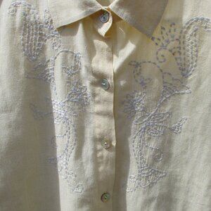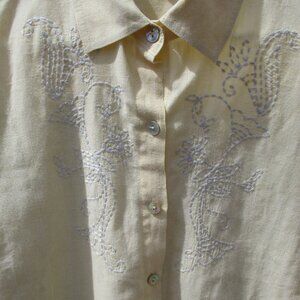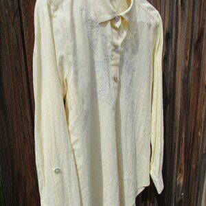 NOMADIC TRADERS Embroidered Long Sleeve Shirt Pastel Yellow Blouse Size M