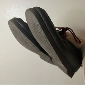• rare vintage, Great shoe, soft dark brown leather, built in arch support. Maroon lace up. Slip on loafer style. Padmore / Wallabee style shoe. Preppy, business casual.