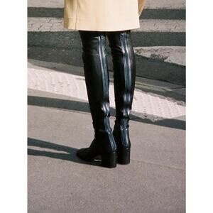 A luxurious and modern take on the thigh-high boot, the Nomasei Whisper boots are handcrafted in Italy from supple stretch nappa leather. Designed with a sleek over-the-knee silhouette, squared-off toes, and chunky heels, they feature a back zipper for ease and built-in adhesive so they stay perfectly in place. The fleece insole with memory foam provides lasting comfort, making them as wearable as they are striking.
