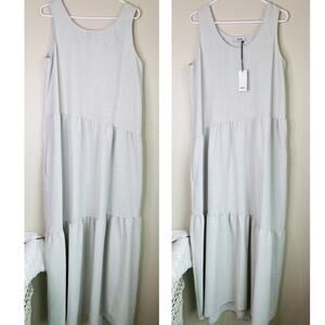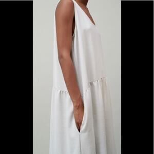 Sleeveless gathered maxi dress in ‘natural’. Layer with a blazer or kimono for a cool summer look. Relaxed, oversized fit is perfect for an afternoon brunch, stroll on the beach, shopping downtown or lounging around in the garden!