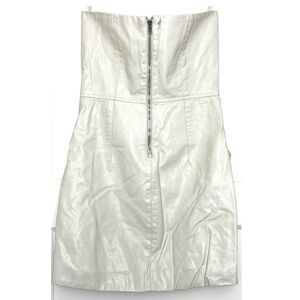 NONCHALANT Beige Vegan Faux Leather Strapless Exposed Zip Sheath Mini Dress XS