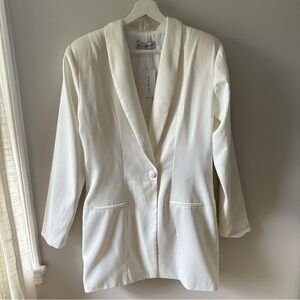New with tag, has minor marks on the front from retail exposure, can be dry cleaned, also left sleeve lining is a little loose, needs to be picked up a little.