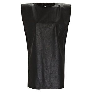 Tailored in a smooth faux leather, the Imogen dress updates the structured shoulder tank as a leg-lengthening mini.