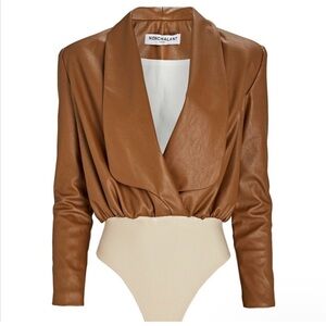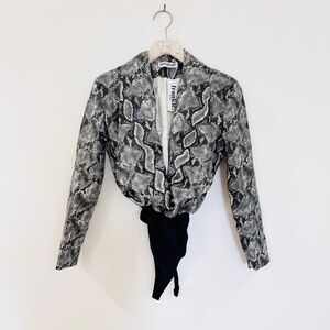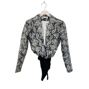 NONchalant Faux Leather revolve white/black/gray snakeskin bodysuit NWT
