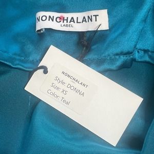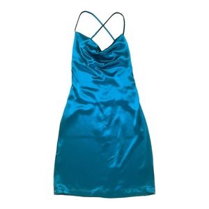 NONchalant Label NWT Satin Teal Donna Dress Cross Back XS