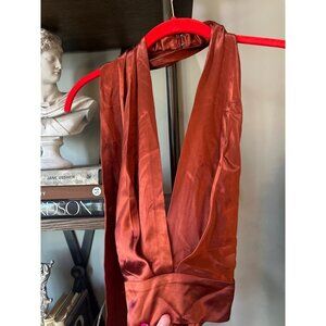 NONchalant Label Tara Silk Plunge Top Rust Womens Size XL