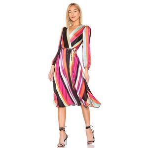 NONchalant The Label Camila Rainbow Stripe Silk True Wrap Midi Dress XS …