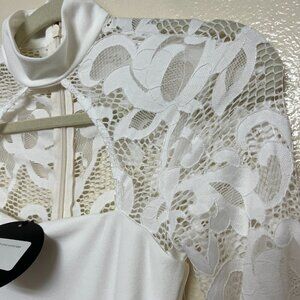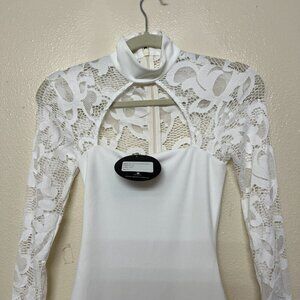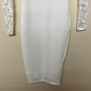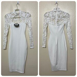 NOOKIE Long Sleeve Lady Lace Midi Sheath Dress XTRA SMALL In White