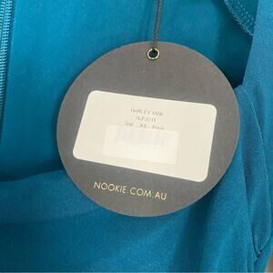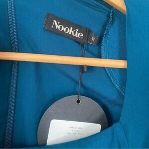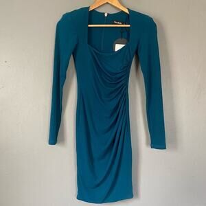 NOOKIE Puff Sleeve Bodycon Dress Stretch Jersey Teal Square Neck SirenCore XS