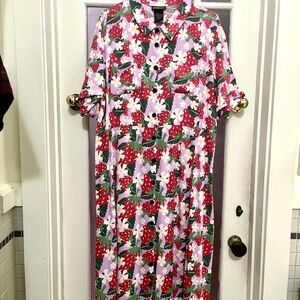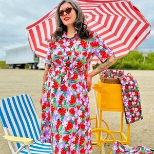 Awesome retro-inspired midi dress from Nooworks. This is no longer available from the brand. Pockets, buttons down the front. Missing the little fabric belt. Otherwise great condition, no fading or pilling.