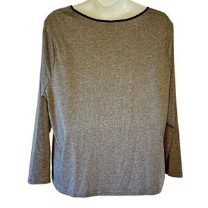 NORACORA NEW WITH TAGS Smock Style Soft Flowy Plus Size Top Grey Jersey Knit with Black Piping and White Snaps at Neckline Scoop Neck with Long Sleeves Very Flattering Easy Wear Casual or Professional Comfortable Soft Lightweight Modest Mature Office Teacher Work Business