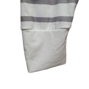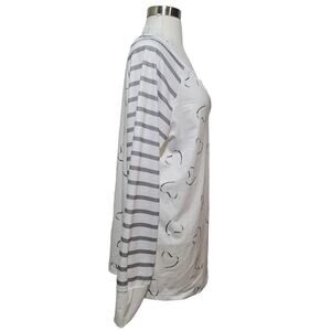 NORACORA Womens White Gray Stripe Heart V-Neck Crochet Long Sleeve Top Size L